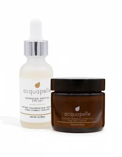 Your Essential Anti-Aging Routine: Radiant Ceramide & Peptide Age-Defy Cream + Advanced Peptide Eye Gel.